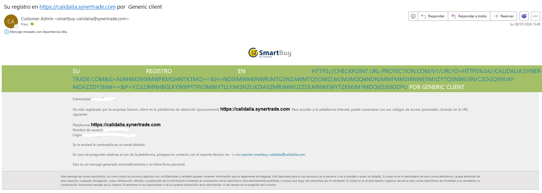 También recibirás un mail de invitación a la plataforma desde el mail de soporte de Calidalia donde te adjuntaremos la guía de usuario y las instrucciones aquí descritas.