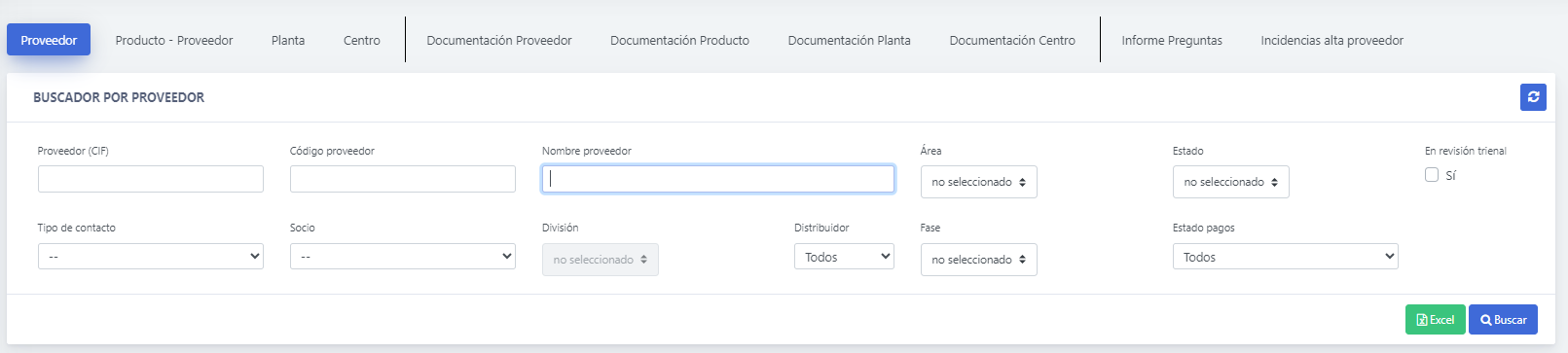 - Deshomologado: Se puede deshomologar en cualquier momento un proveedor.
